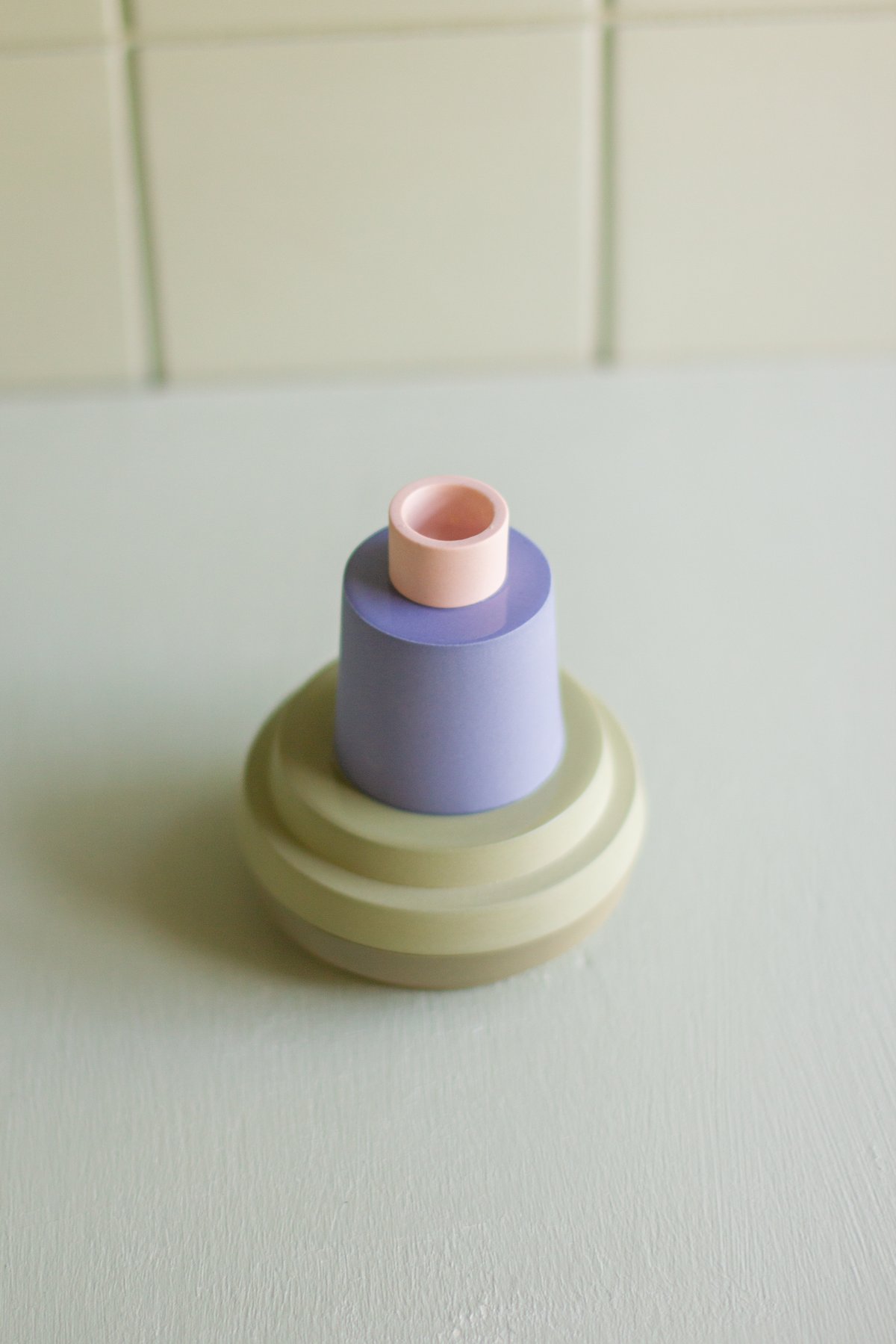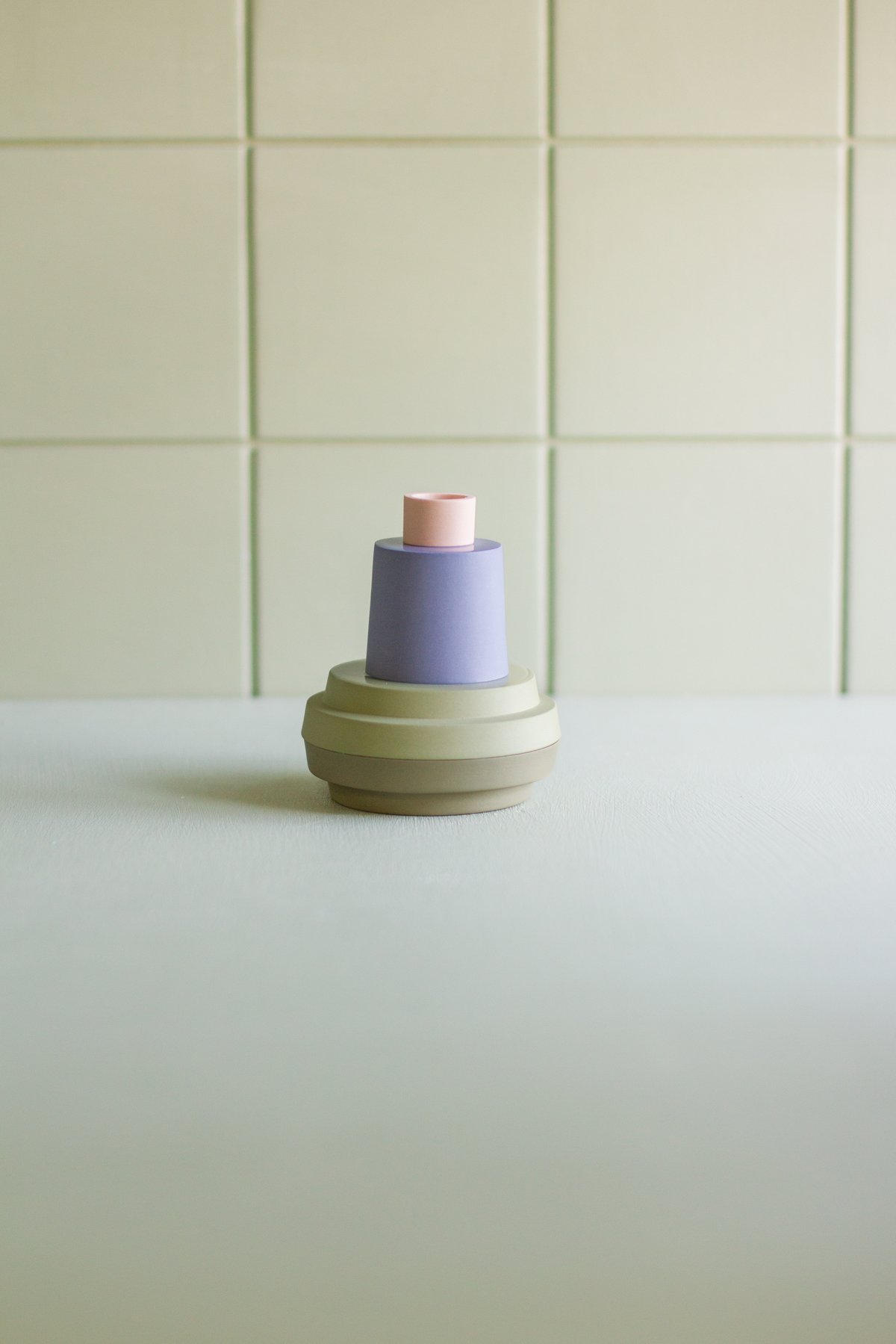 candleholder green-blue-salmon pink
